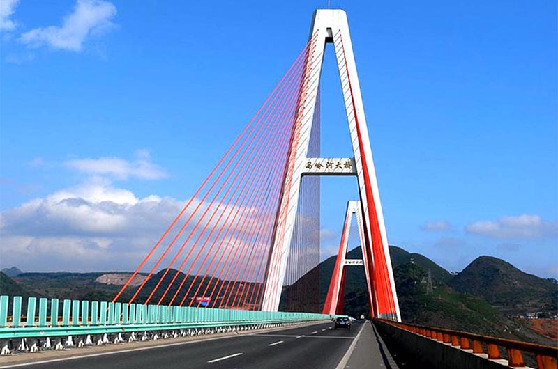 貴州省第一座雙塔斜拉橋——馬嶺河大橋,位于貴州興義市頂效經(jīng)濟(jì)開發(fā)區(qū),跨越馬嶺河峽谷風(fēng)景名勝區(qū),是汕昆高速公路貴州境內(nèi)板壩至江底段重要控制性工程。據(jù)悉,該項(xiàng)目也是全國第一次在斜拉橋高墩泵送及主梁中使用機(jī)制砂粉煤灰混凝土。